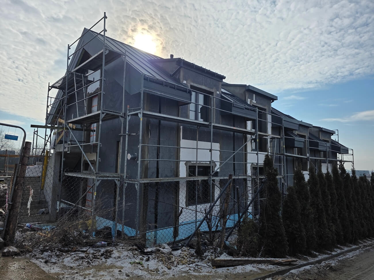Osiedle obejmuje 7 budynków dwulokalowych (wolnostojącego oraz trzech w zabudowie bliźniaczej). W każdym budynku znajdują się dwa czteropokojowe lokale: