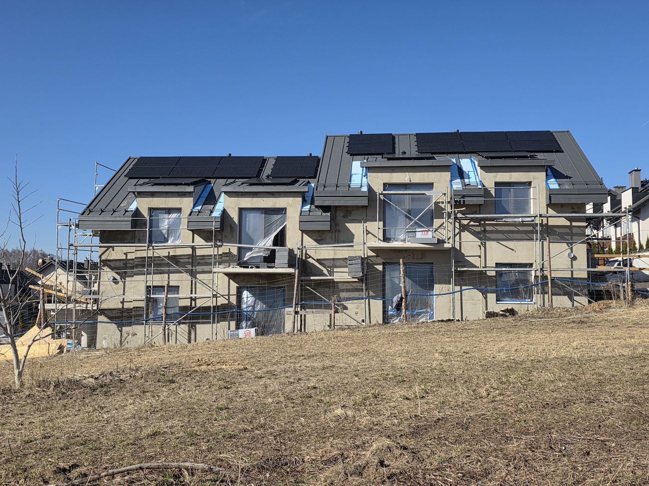 Każde mieszkanie posiada również własną instalację fotowoltaiczną, pompę ciepła i ogrzewanie podłogowe.