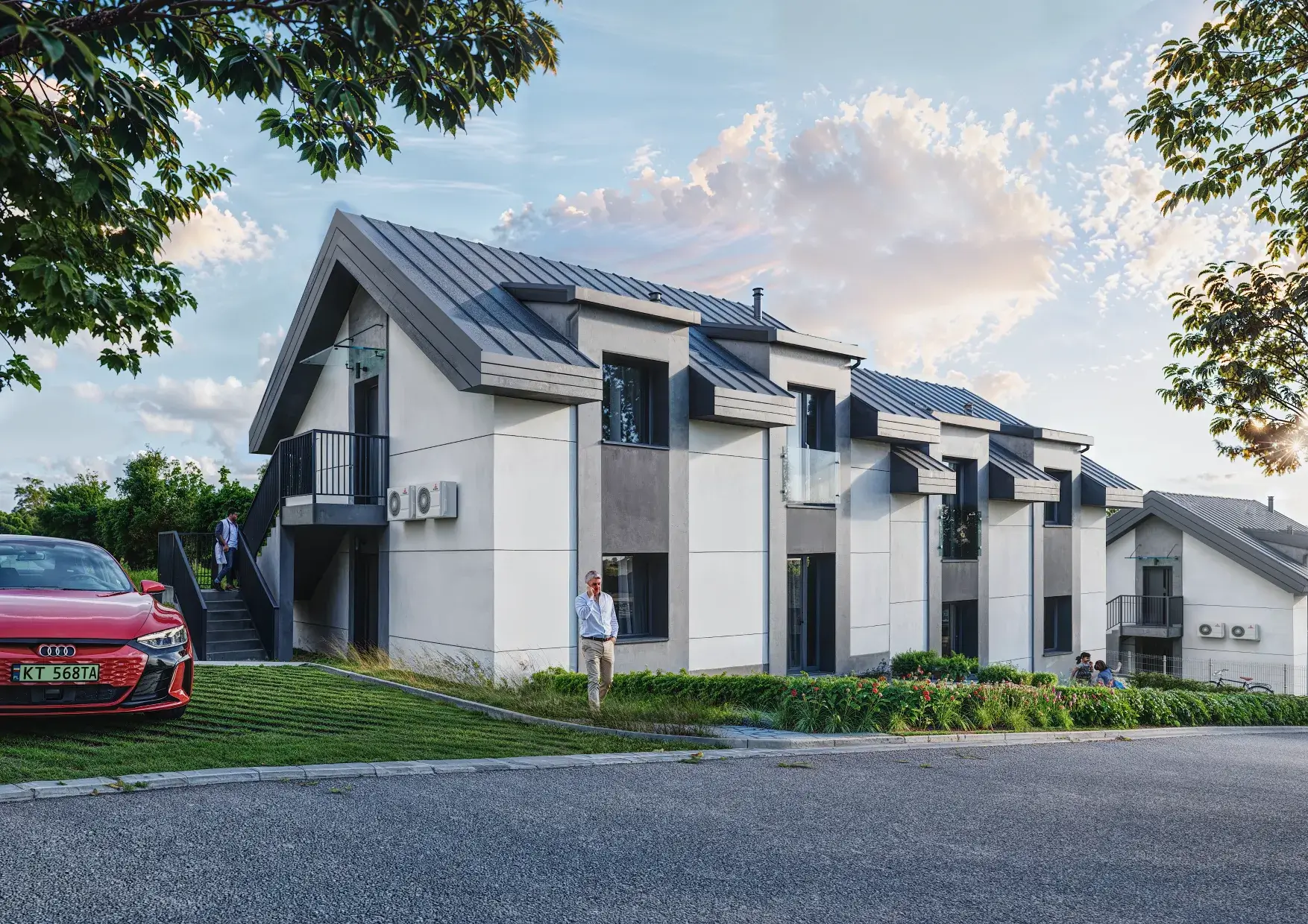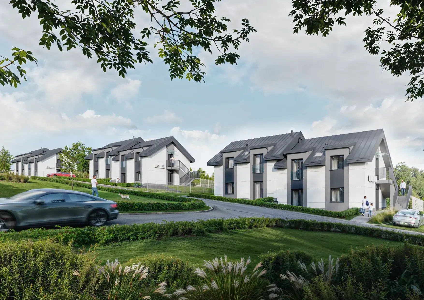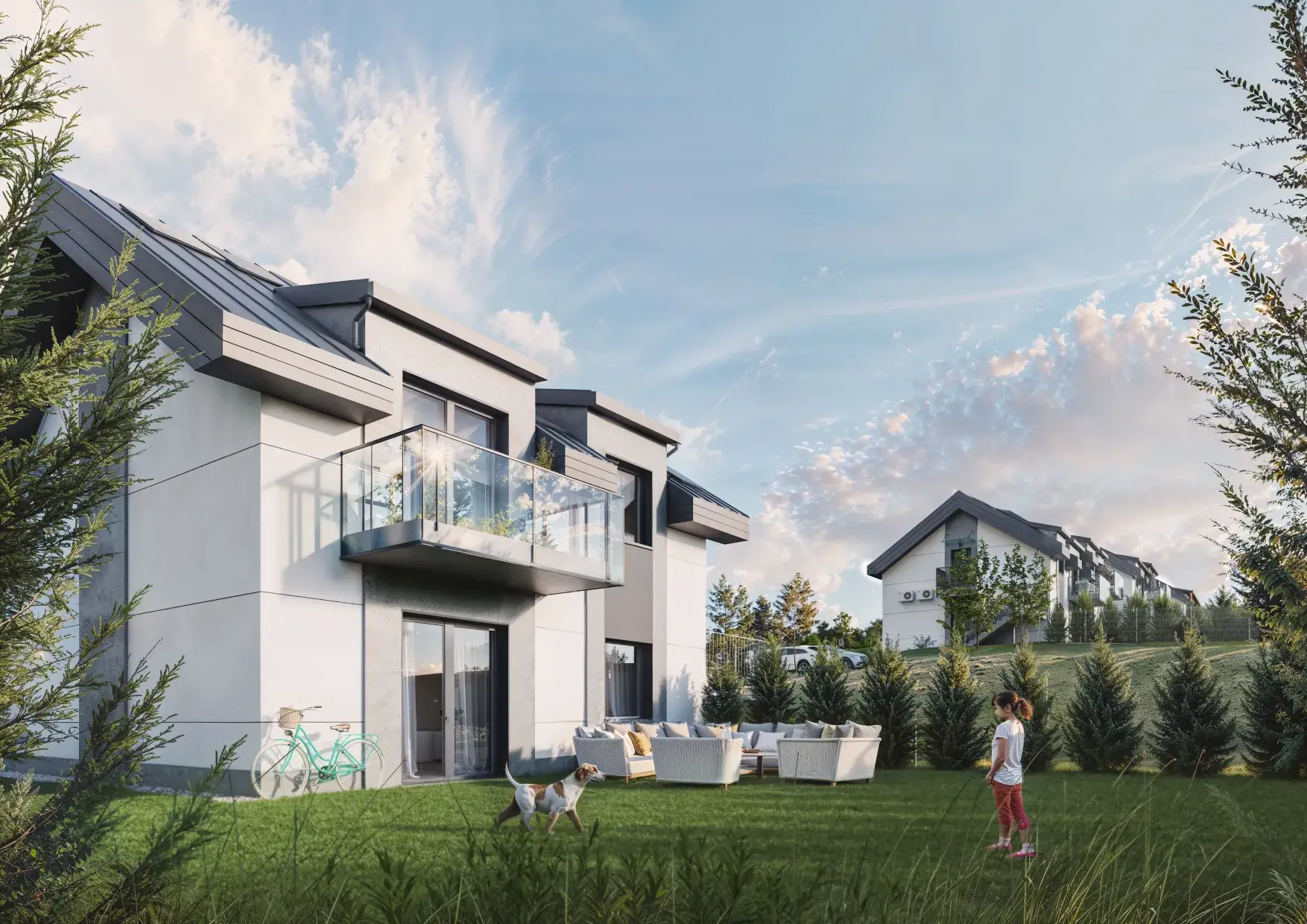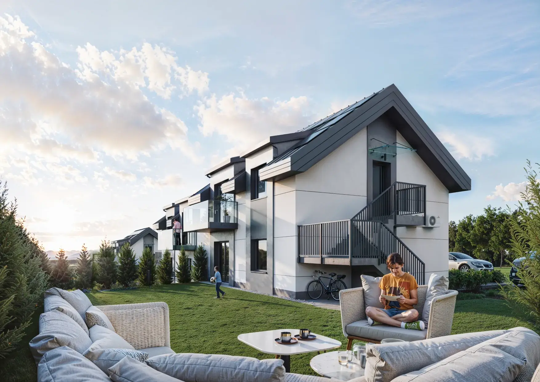 Każde mieszkanie posiada swój prywatny zielony ogródek oraz przypisane miejsce postojowe, przy którym można podłączyć ładowarkę do samochodu elektrycznego. Dodatkowo możliwość zakupu drugiego miejsca postojowego.