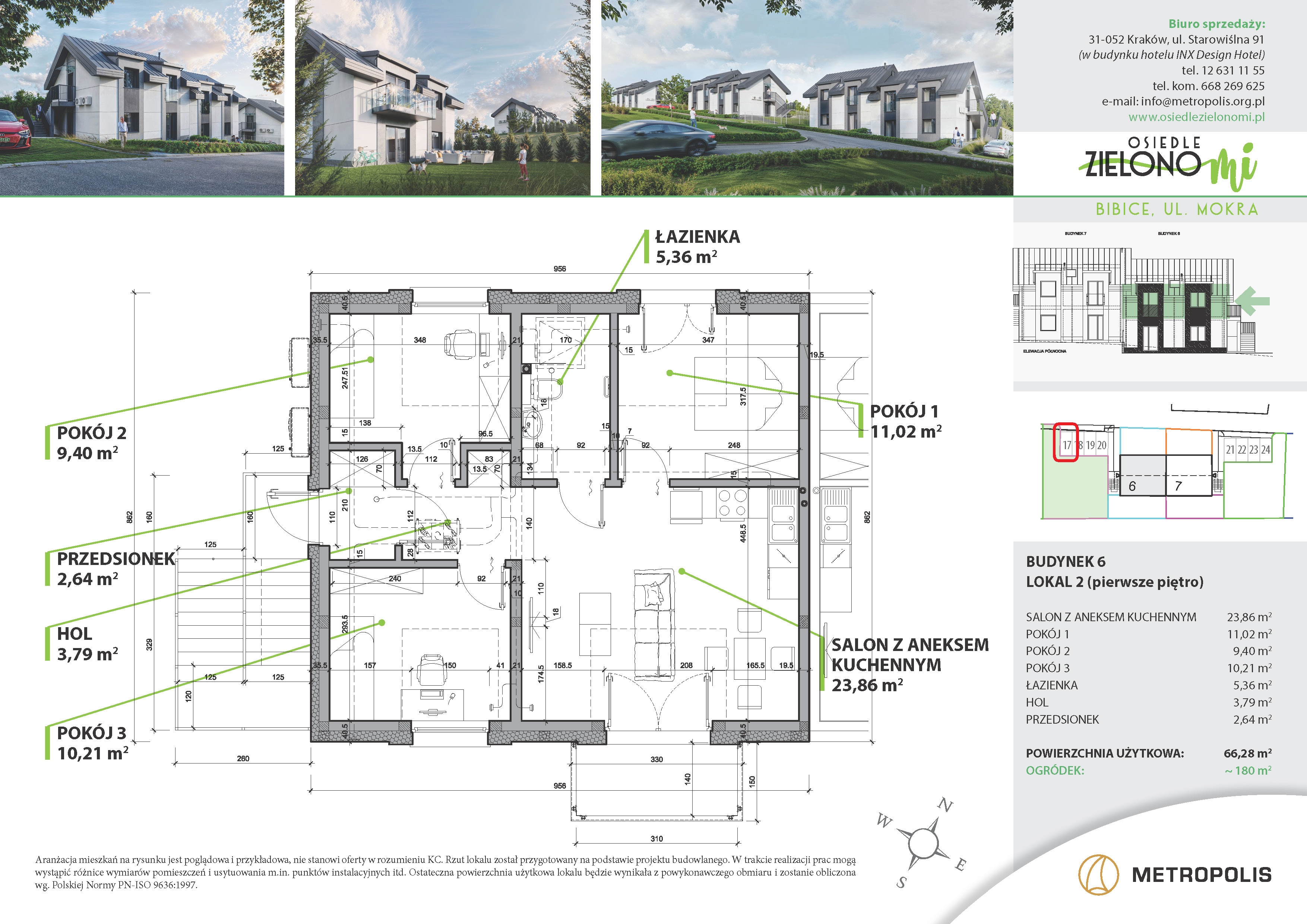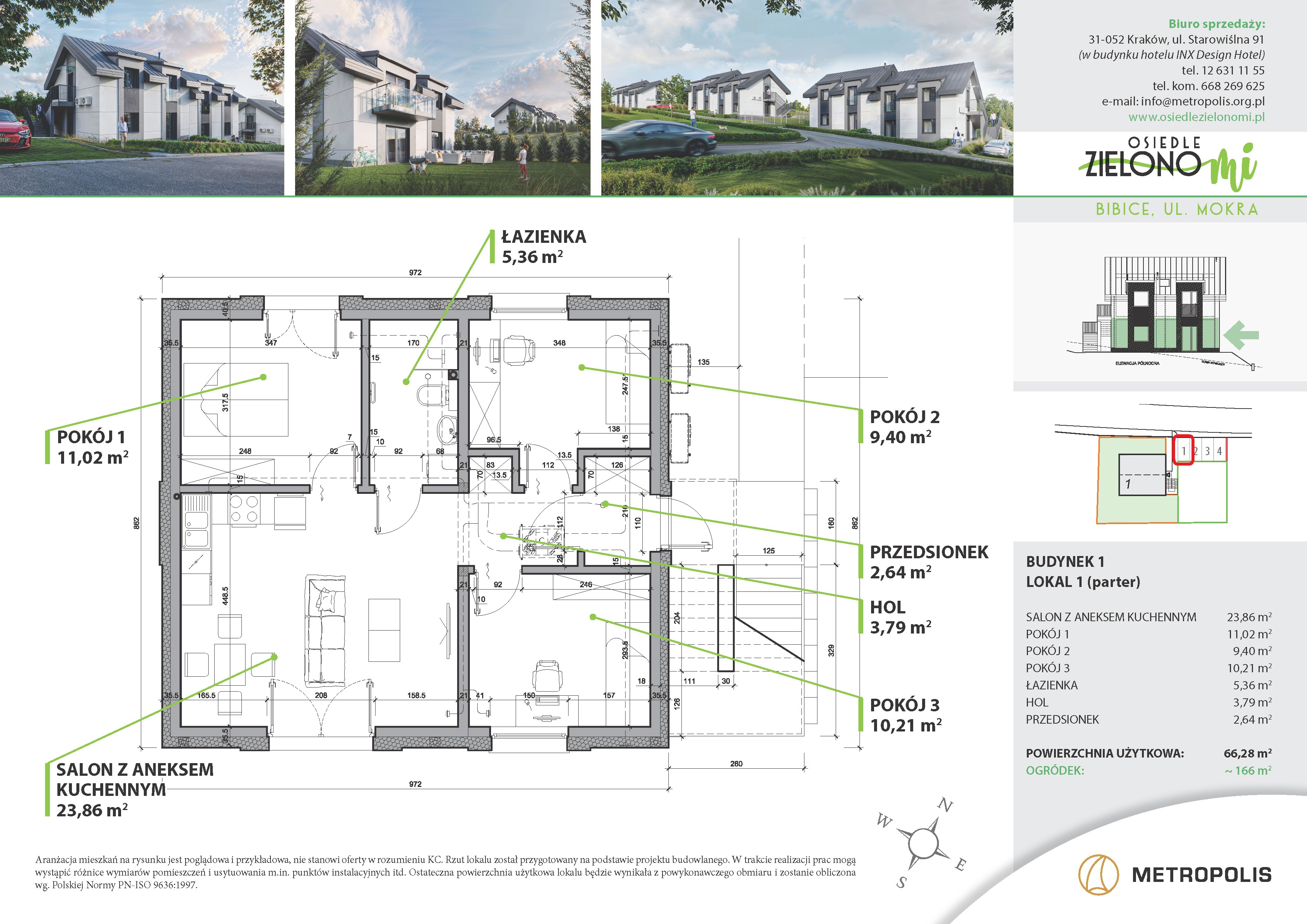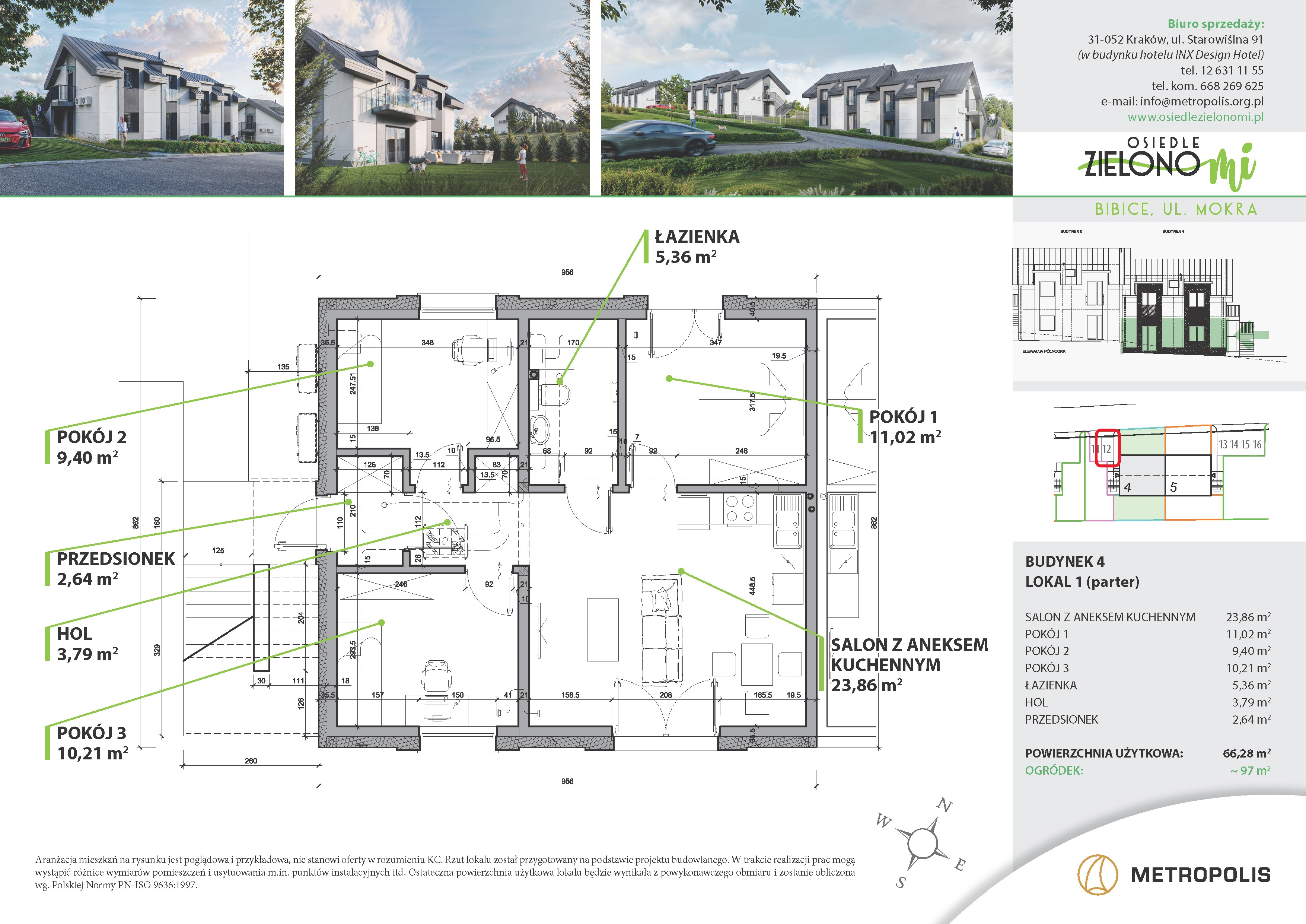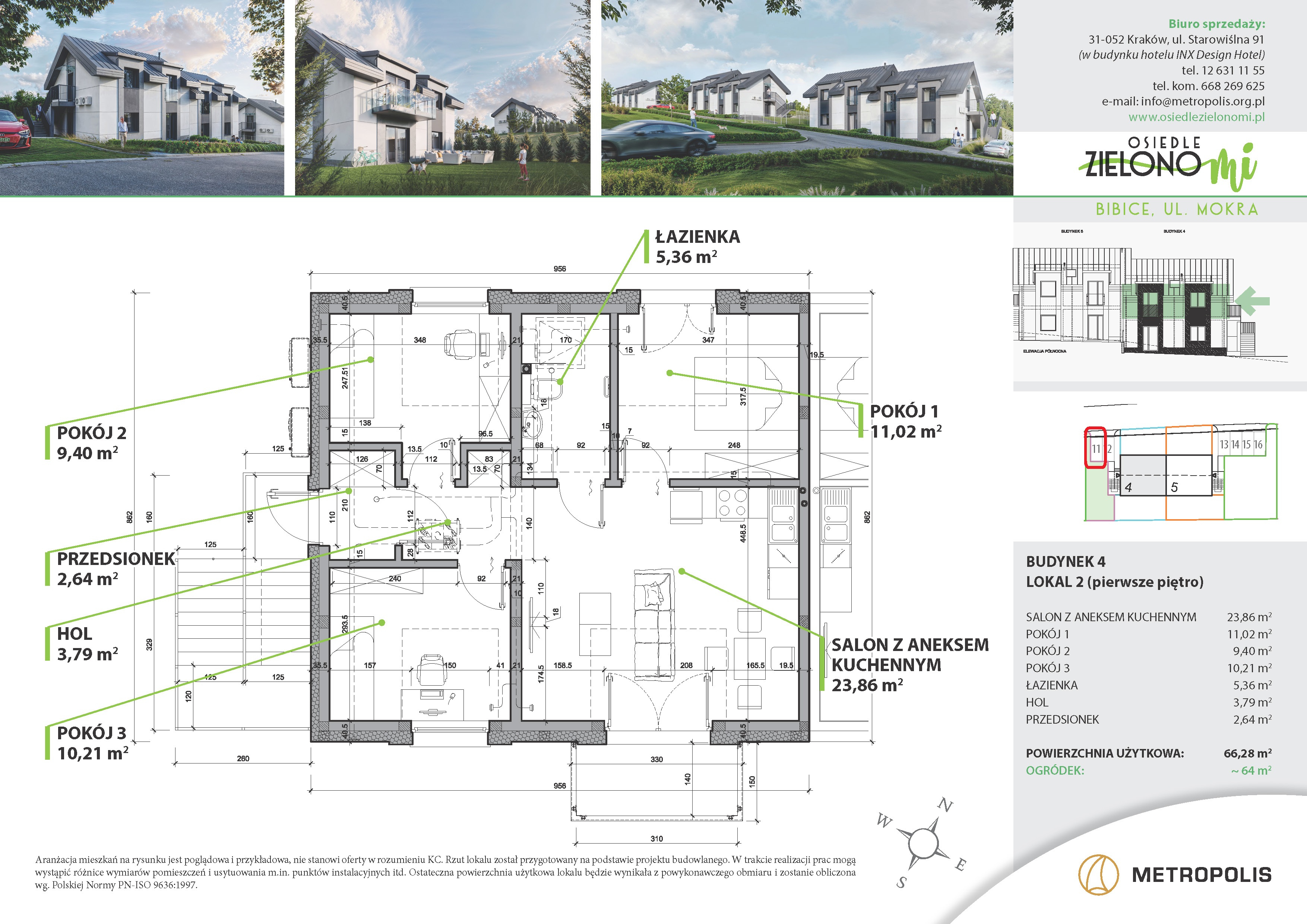 – na parterze o pow. 66,28 m² z prywatnym zielonym ogródkiem z bezpośrednim wyjściem do niego z lokalu,